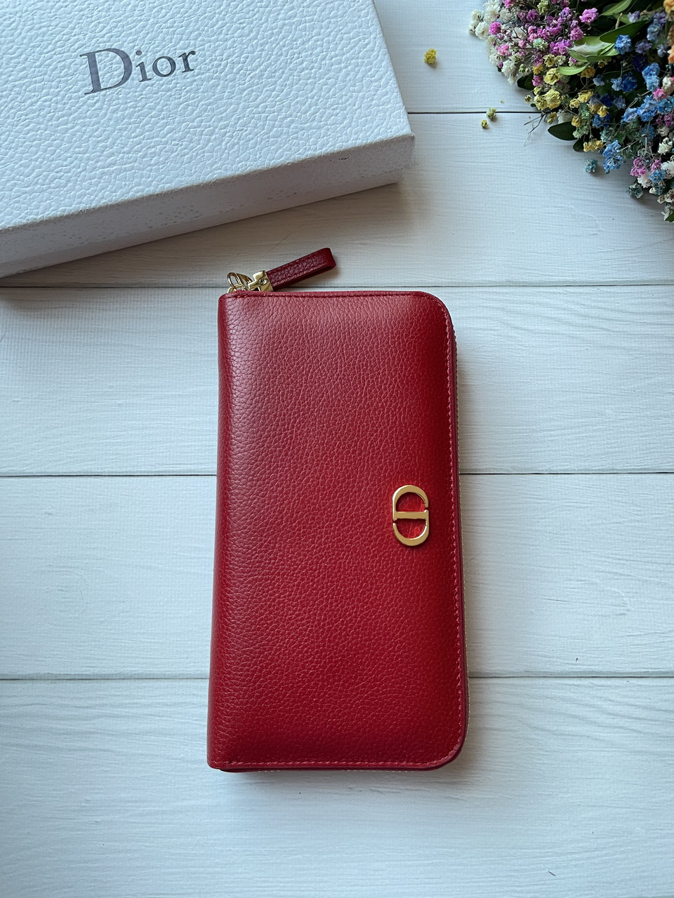 - Стильний червоний гаманець з лакованої шкіри.